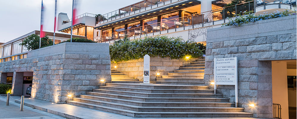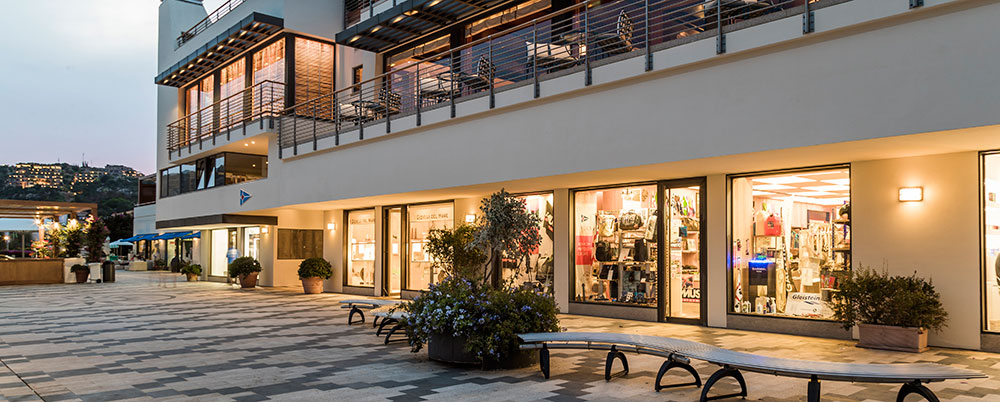 In Piazza Azzurra si trovano una boutique di abbigliamento sportivo, uno shipchandler, un ATM, bar-ristoranti con ricercate proposte eno-gastronomiche, un famoso coiffeur e altri servizi.